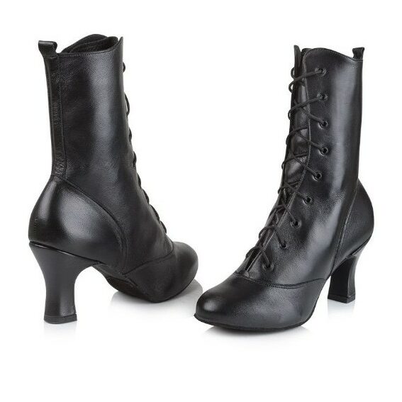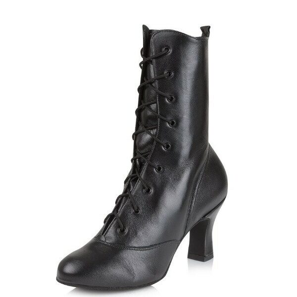 Skinn støvel med høyt skaft, snøring og glidelås på innersiden av leggen. 7,5cm snelle hæl og semsket såle. Håndlagde sko produsert i England.