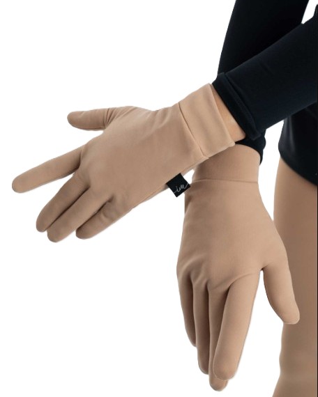 Hansker til kunsløp. Flosset på innsiden, så skal holde varmen på isen. 15% elastan og 85% polyamid som absorberer fukt og svette.